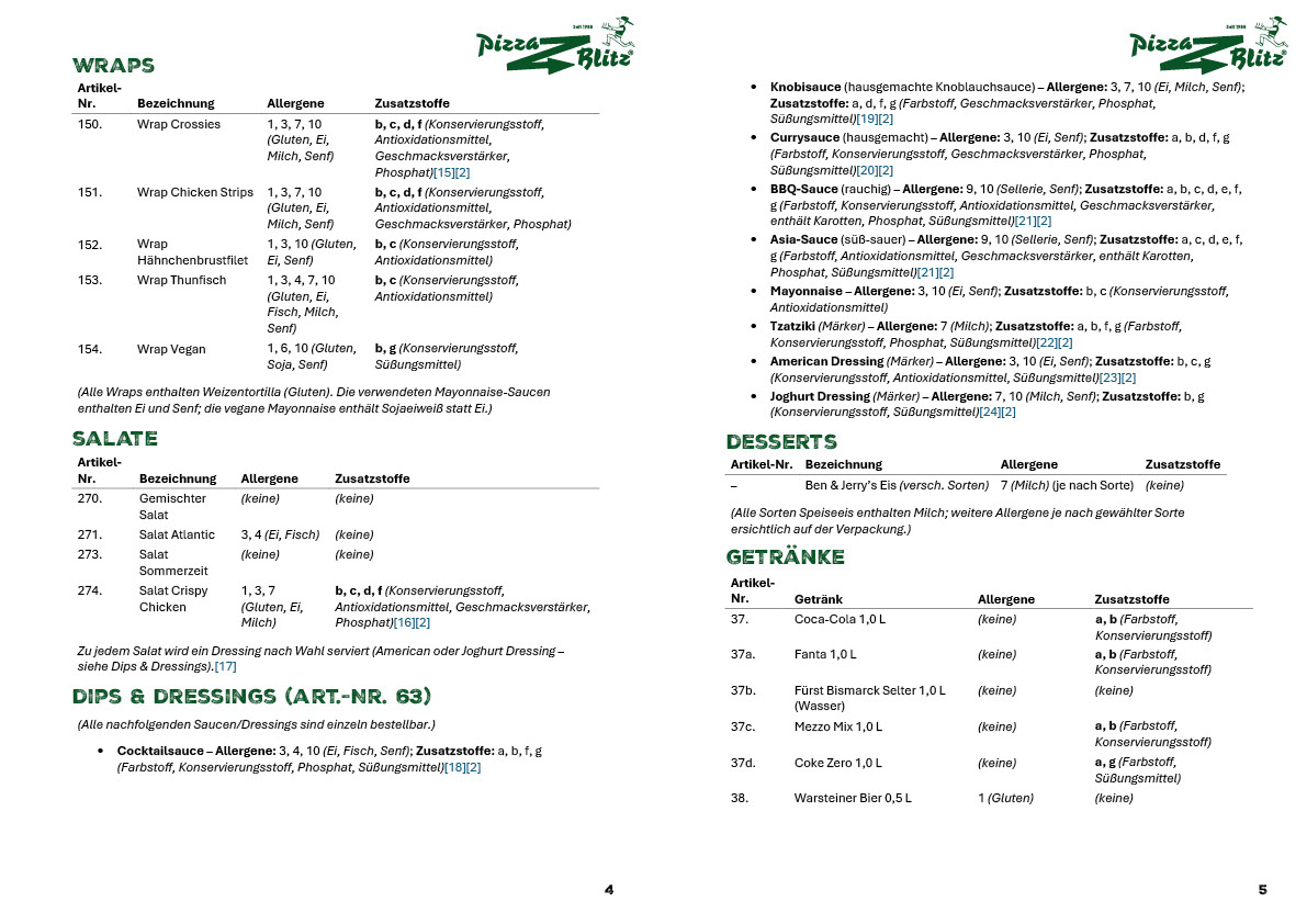 4.) Der Vertrag kann von Pizza Blitz nur dann ausgeführt werden, wenn der Kunde bei der Bestellung korrekte und vollständige Kontakt- und Adressinformationen zur Verfügung stellt. Der Kunde ist verpflichtet, unverzüglich alle Ungenauigkeiten der Informationen (einschließlich der Zahlungsdaten) zu melden, die an Pizza Blitz übermittelt wurden.