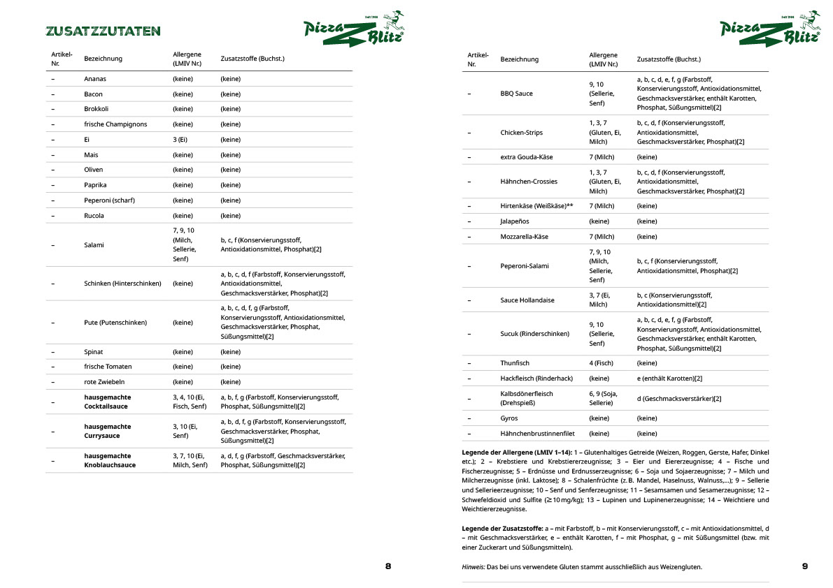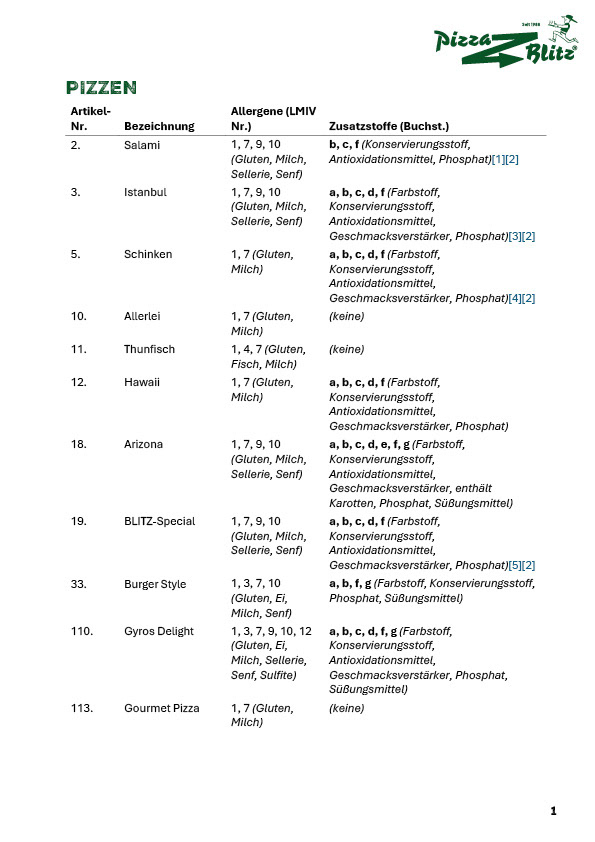 Bitte wenden Sie sich hierzu an: info@pizzablitz.net